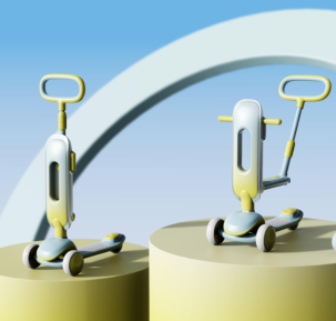 三合一/儿童滑板车——一车三用,可坐可滑可推行,三合一多功能的滑板车比比皆是。这个设计与市面上不同的是,在切换形态后不会有多余的配件。这使得切换过程更加简单方便,孩子可以轻松独立完成操作,无需担心丢失