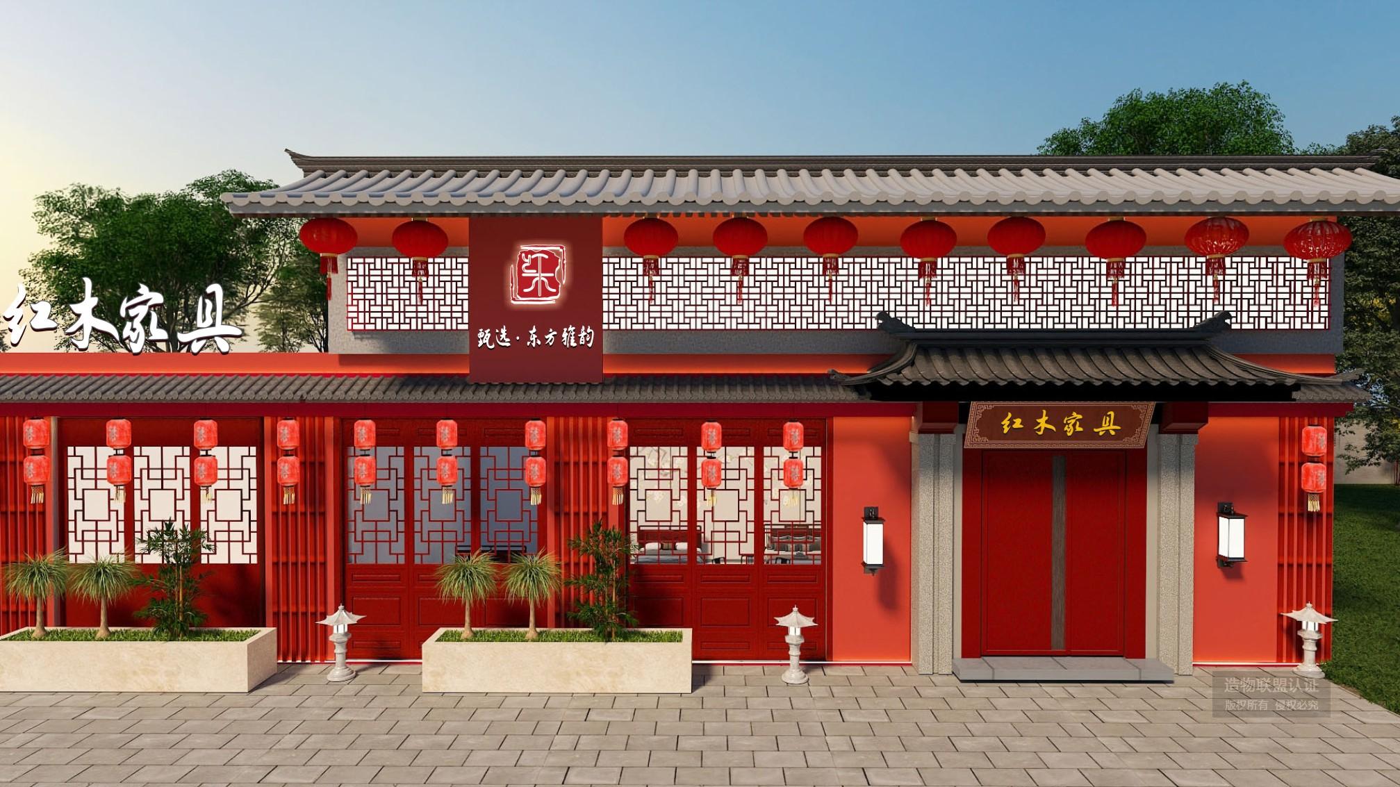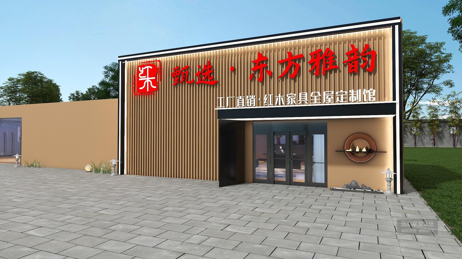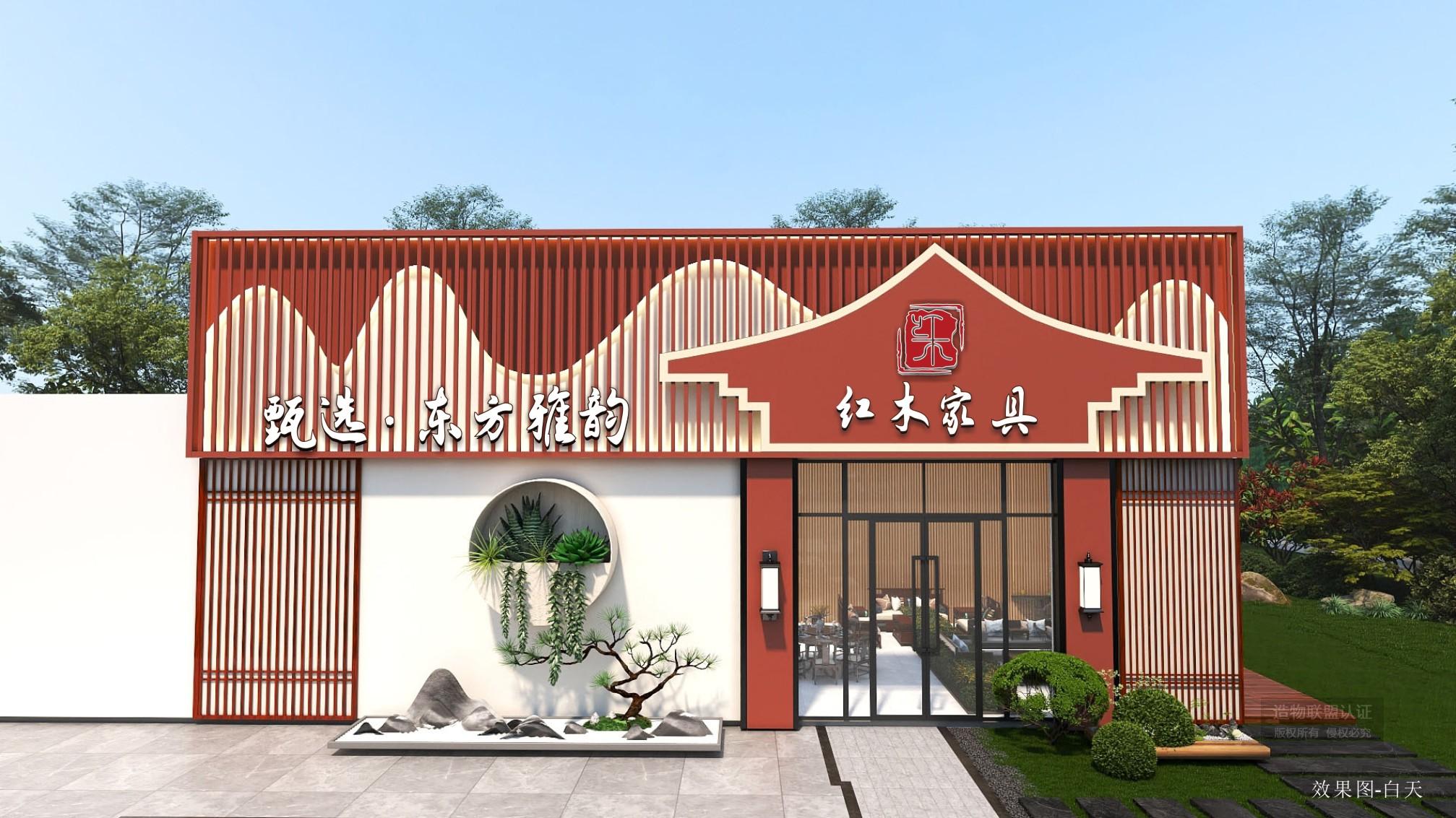 红木家具门头墙体外延设计