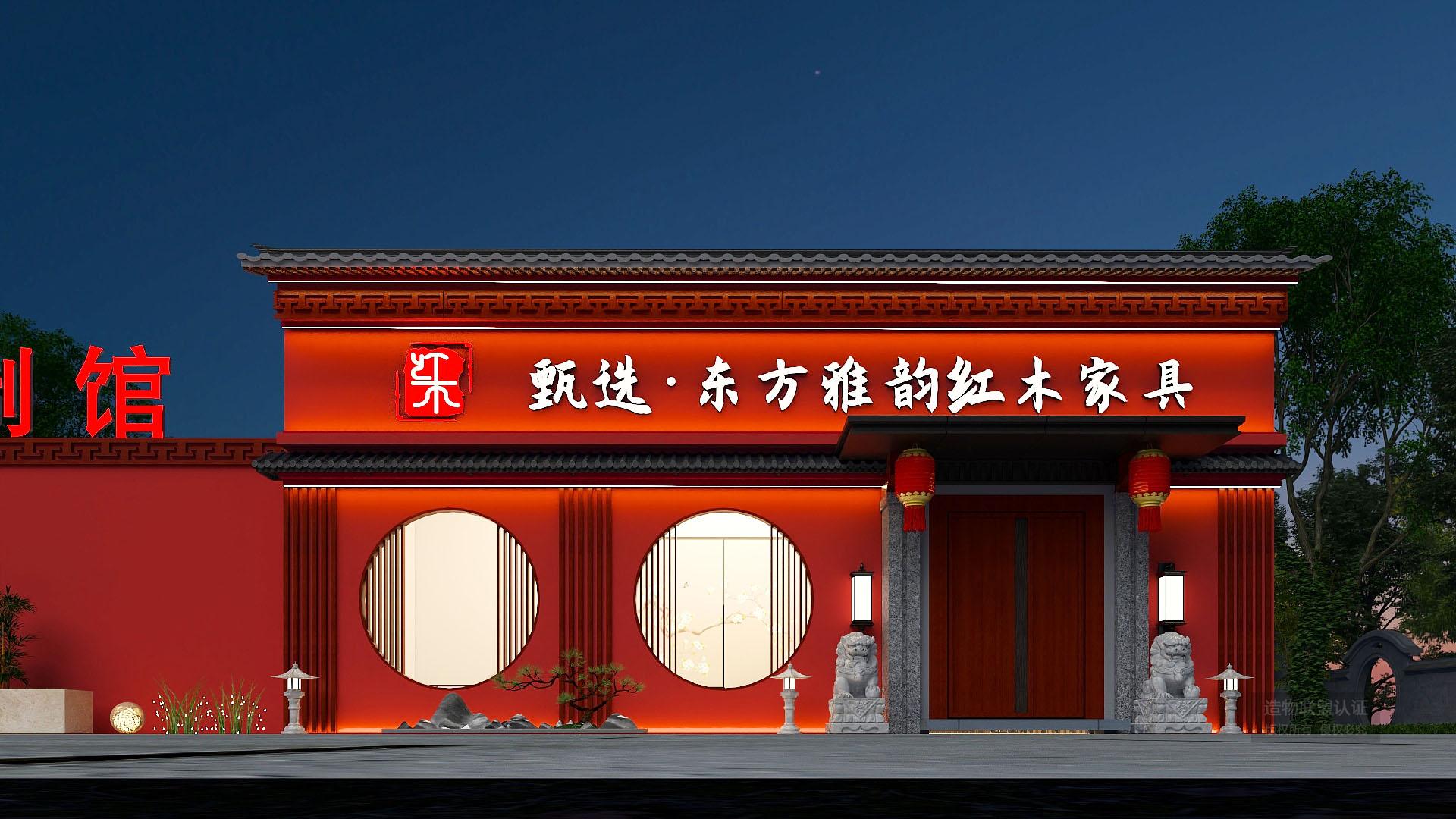 红木家具门头墙体外延设计效果