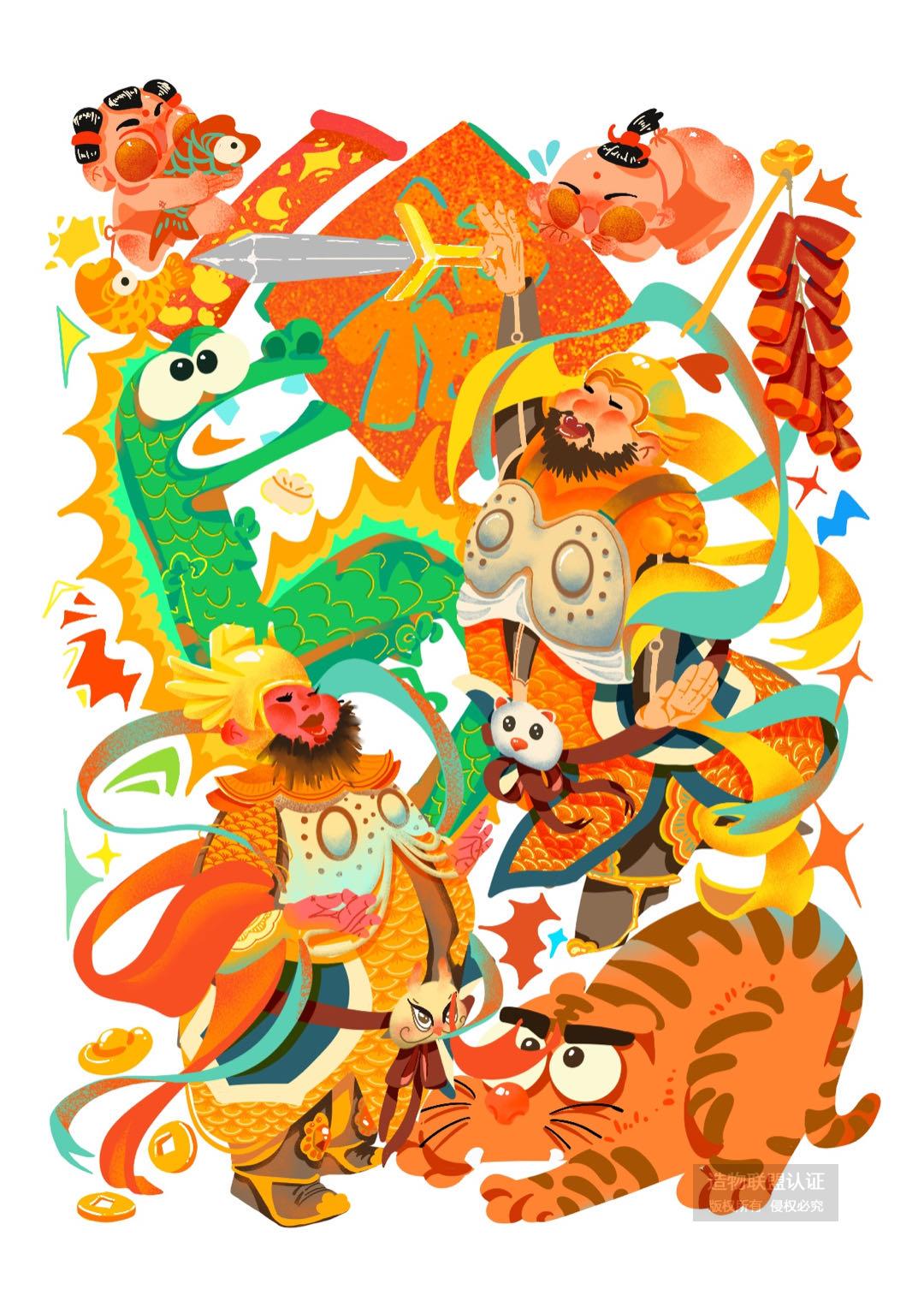 龙年新年质感插画设计——龙门贺岁