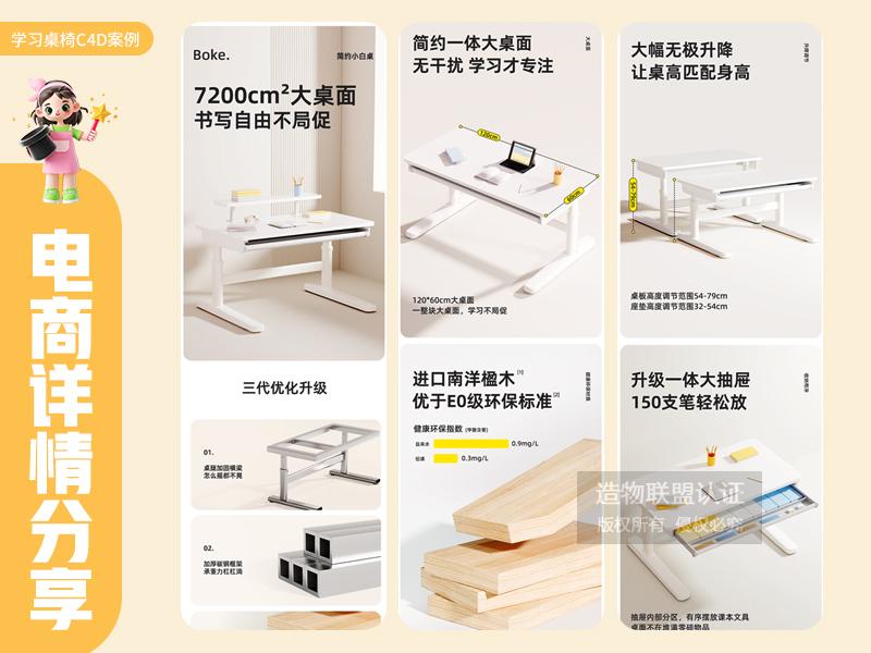 学习桌C4D渲染详情页设计