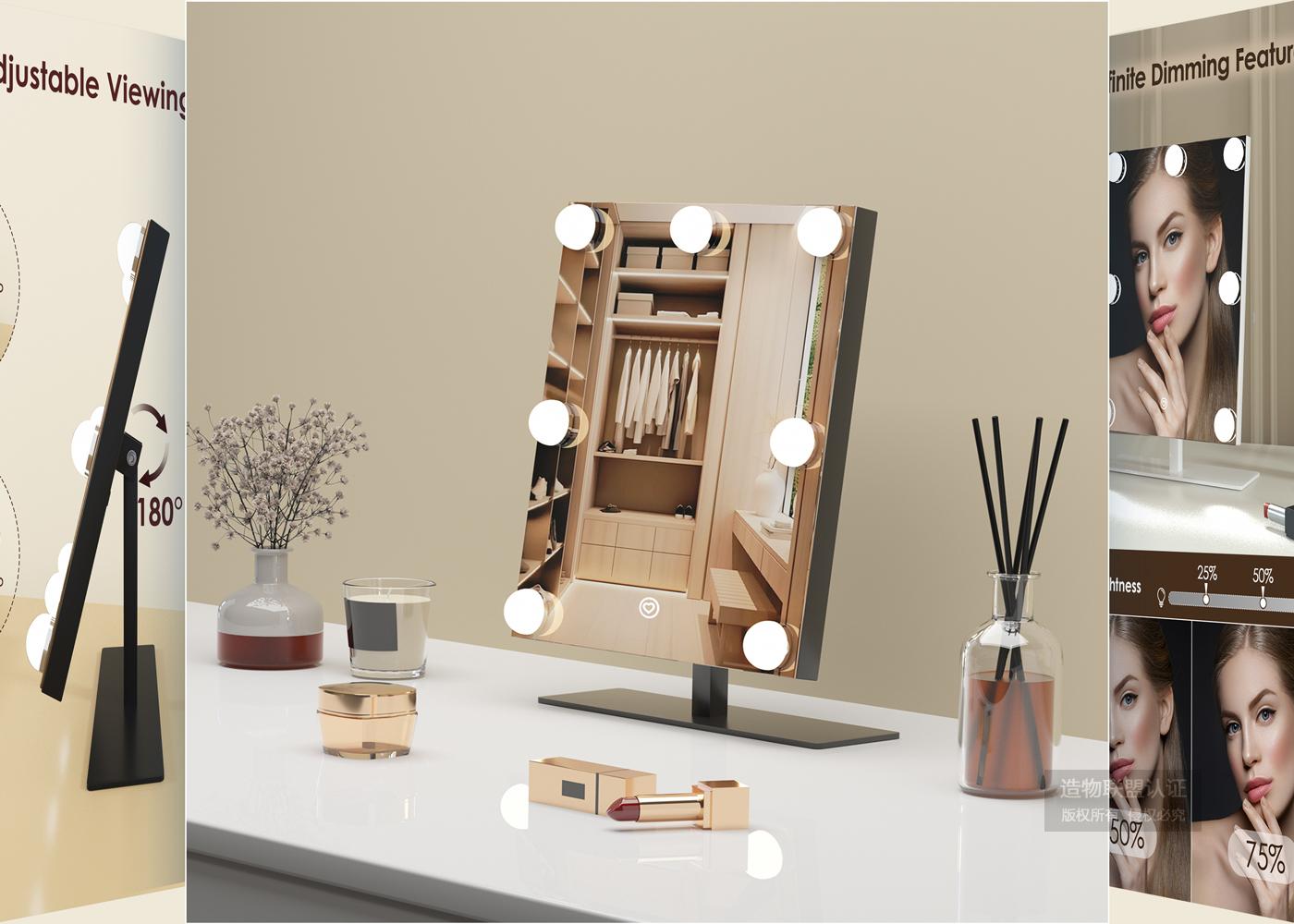 亚马逊-360度旋转化妆镜A+主图