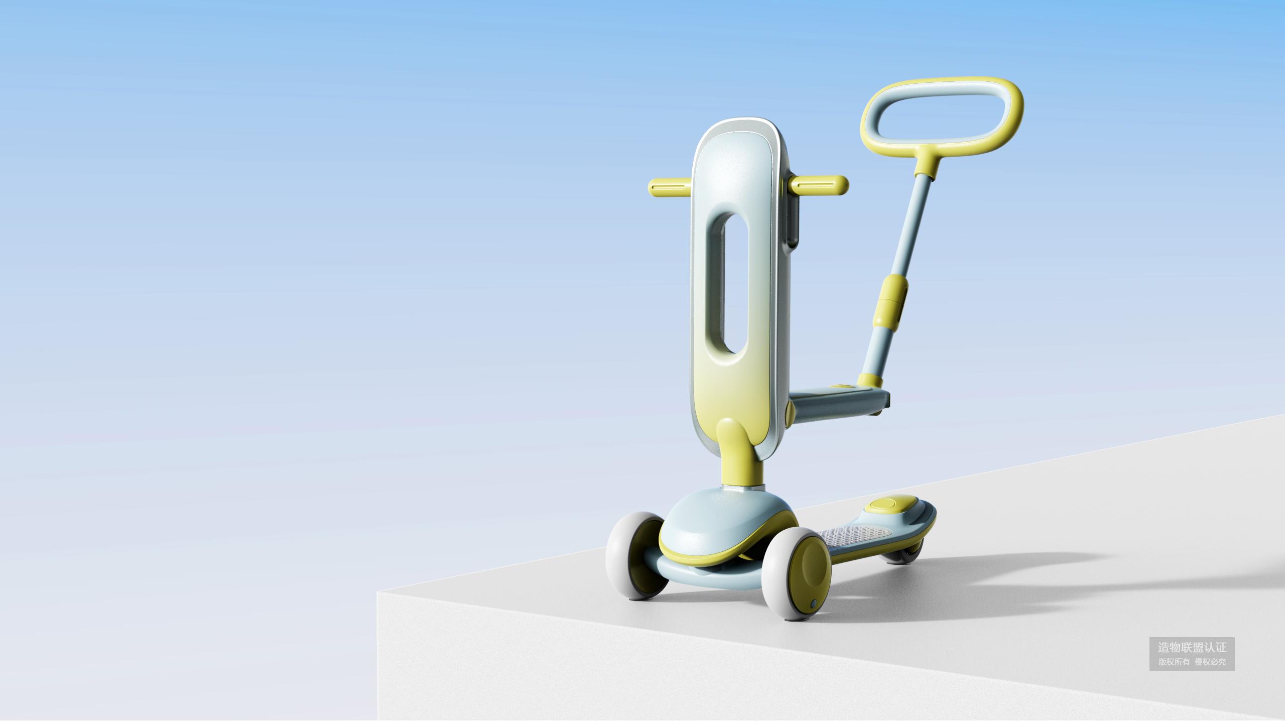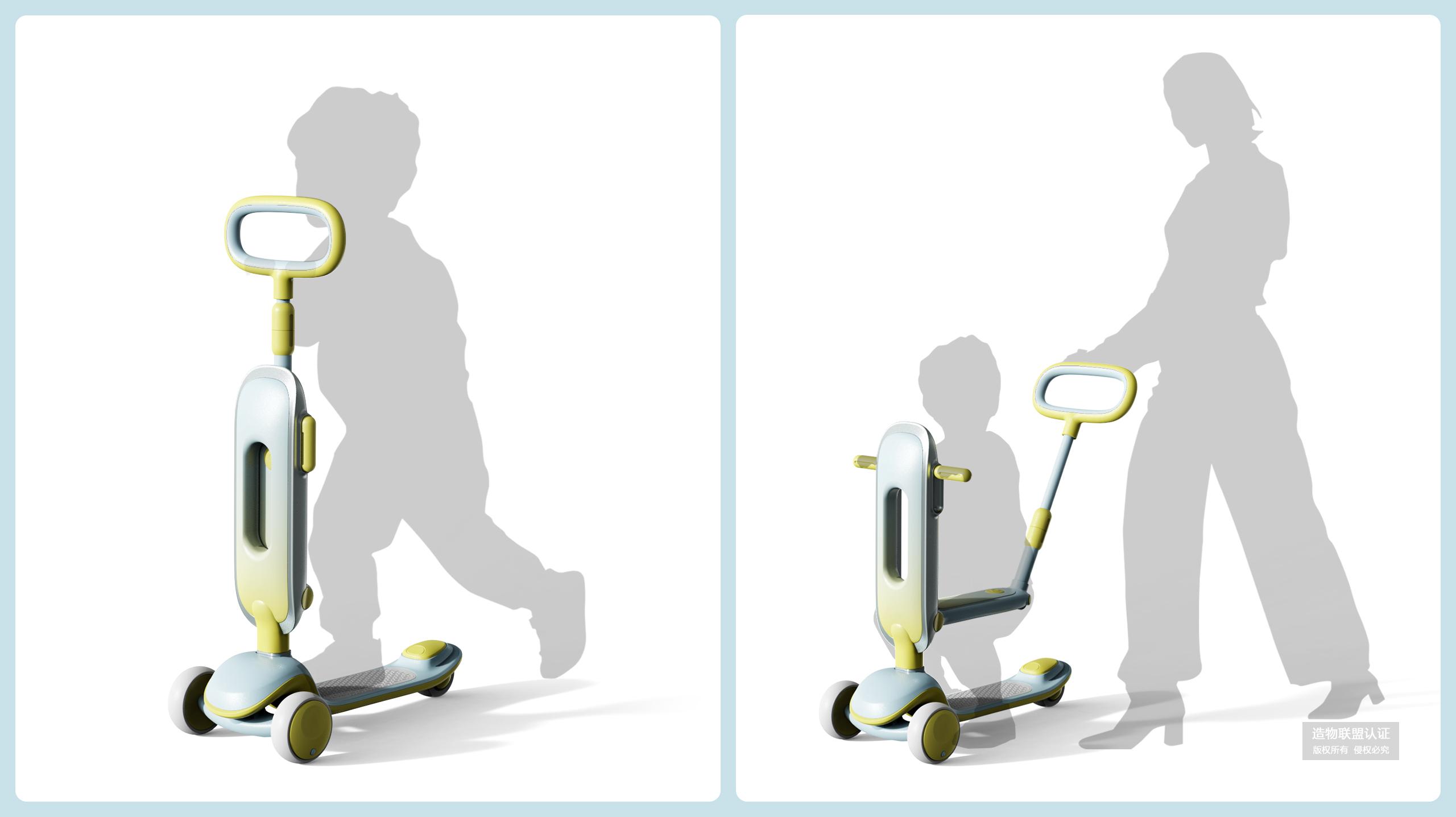 三合一/儿童滑板车——一车三用,可坐可滑可推行,三合一多功能的滑板车比比皆是。这个设计与市面上不同的是,在切换形态后不会有多余的配件。这使得切换过程更加简单方便,孩子可以轻松独立完成操作,无需担心丢失